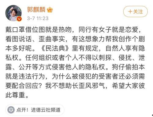面对突如其来的爆料,这位明星迅速做出了回应。他在微博上发布了一则声明,否认了与神秘女子的关系,并表示自己将保留追究法律责任的权利。至于那位导演,则一直保持沉默,没有对此事做出任何回应。